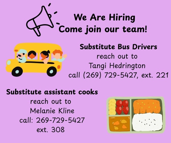 Athens Food Service Is currently hiring food service substitute positions. For more information call Melanie Kline at (269) 729-5427 ext 308. Job Description and Application